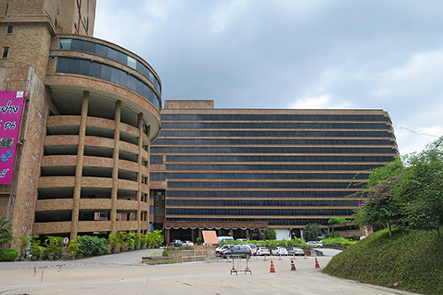 道路の突き当りを塞いでいる茶色い大きなビルは「ロータス・ホテル・パン・スアン・ケオ (Lotus Hotel Pang Suan Kaew)」。