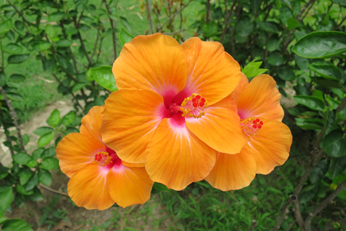 | ロータス・ホテルの玄関前で咲くハイビスカス。 |