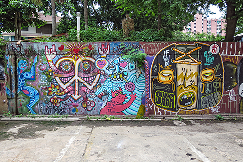 | ロータス・ホテル前の道路で見つけた落書き(壁画)。 |
