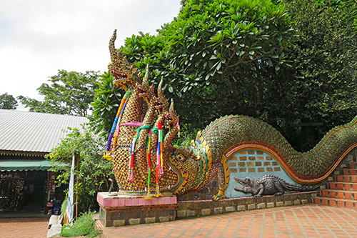 こちらのナーガは鰐の口から出てきたのか、呑まれようとしているのか。それにしても見事な彩色だ。このナーガをはじめバンコクやビエンチャン、ルアンパバーンで見たナーガの様式の違いが面白い。