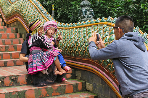 | 民族衣装を着たモン族の子供達、写真のモデルで小銭を稼いでいるようだった。 |
