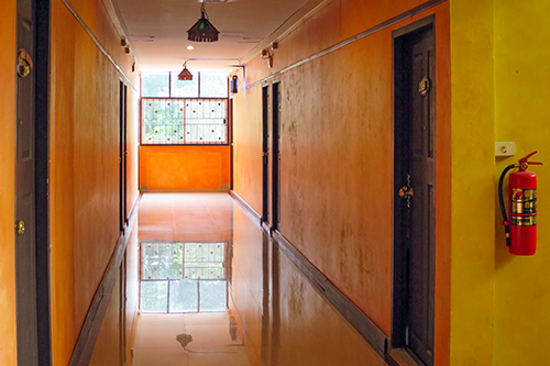 | ロビーの奥に数台の電気洗濯機が設置してあった。 |