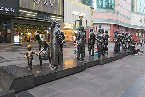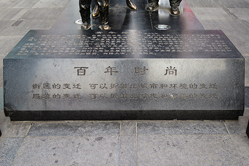 群像の足元の石碑には「百年时尚」と彫られている。