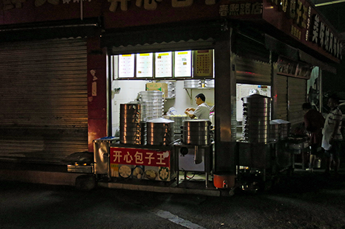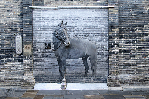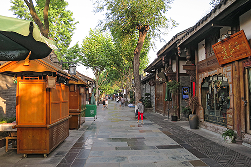 | 窄巷子の東の端、中華料理店「三块砖」の前で。 |