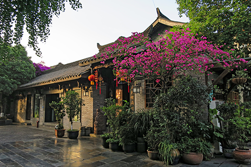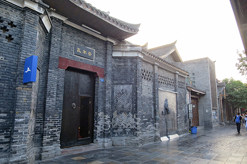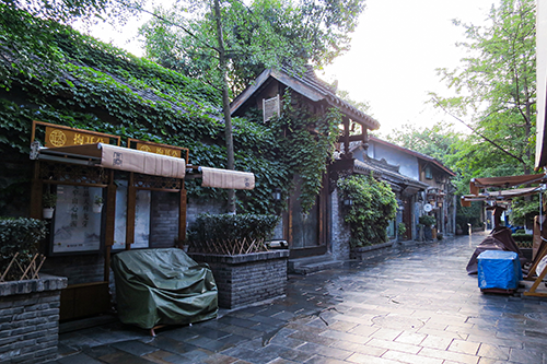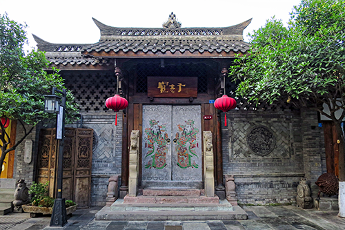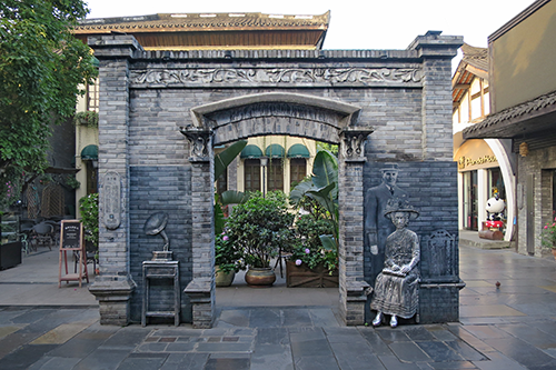 寛巷子に入って直ぐの左手に「寛巷子」と刻まれた扁額を掲げ門がある。門扉には文人と思われる像が描かれている。門柱に小さく「中餐」とあるが、扉の奥は中国料理店か。