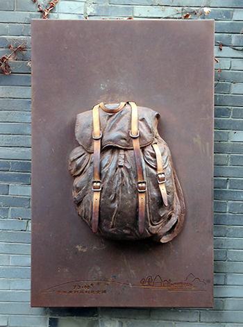 | 地下鉄出入り口奥の壁に飾られた「寛窄」のレリーフ。 |
