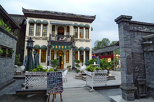 窄巷子にある「小洋楼」は屋根が中国式、建物が西洋式の中国と西洋の折衷建築物。