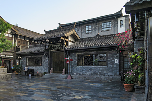 寛窄巷子の古い建物は灰白色のレンガを積んでいるものが多い。