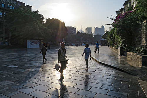 8時を少し回ったところ、下同仁路で高校生の一団とすれ違う。集団登校なのか課外授業で出かけるところなのか。