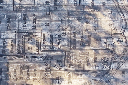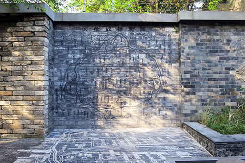 「天啓成都府図」と書かれた地図が刻まれた塀がある。