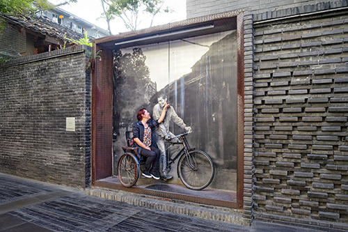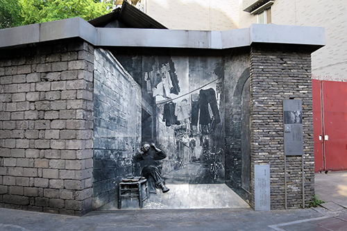 これは1990年、陳錦拍が小関廟街で撮った写真をレリーフにしたもので、28年前の成都の街角の様子が灰白色のレンガ塀に嵌め込まれている。わずか30年ほど前の成都の街角の様子が偲ばれる。