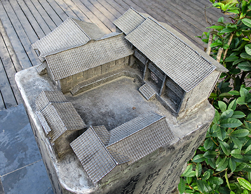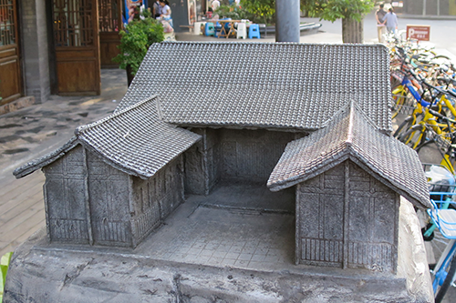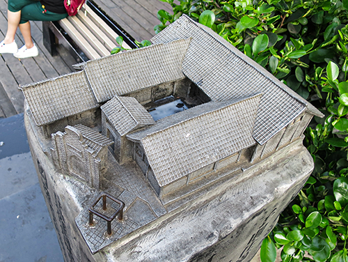 西勝街の歩道脇に往時(清・康煕帝時代)の寛窄巷子に建っていた家の模型が並んでいる。一基毎に特徴があって見比べると面白い。