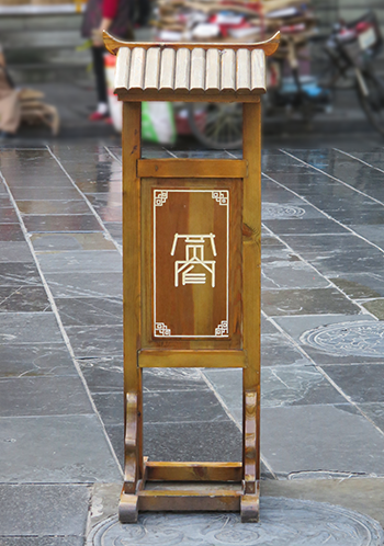 | 入り口の上に「市井生活」とある四川料理店。 |