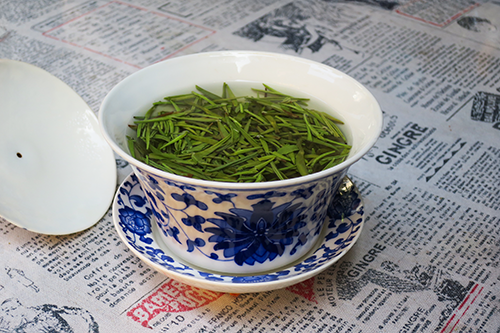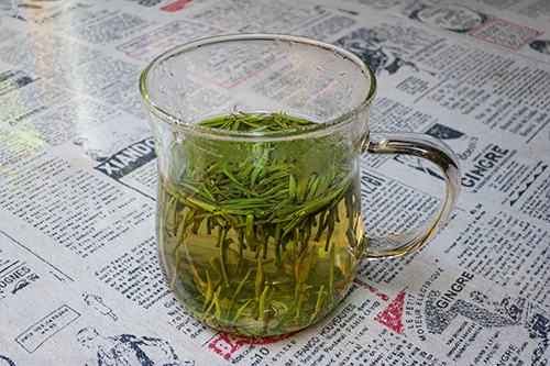 店員が勧めたのは高級茶「竹叶茶」、32元(¥608)。