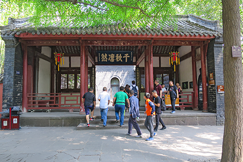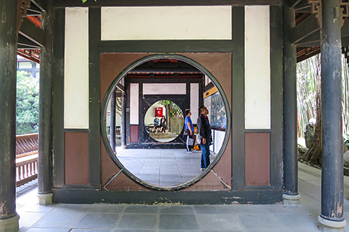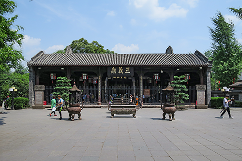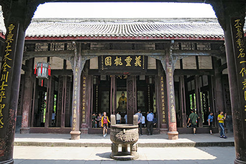 門の奥が「義重桃園」と扁額を掲げた結議廟。「義重桃園」は桃園の誓いで生まれた義は重い、ということを示している。