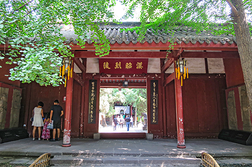 照壁の裏に回ると劉備の陵墓「恵陵」への正面の門が隠れている。この小振りな門には「漢昭烈廟」ならぬ「漢照烈陵」の扁額か掛かっている。