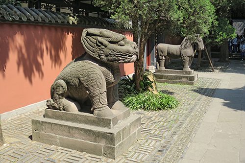 門を潜ると両側に麒麟と馬の像が並ぶ、これも小ぢんまりとした参道に続く。
