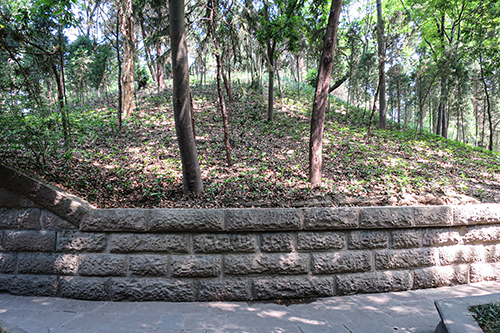 石積みの門を潜る。門を潜るとすぐ目の前に石垣の上とコンモリ盛られた劉備の陵「恵陵」がある。