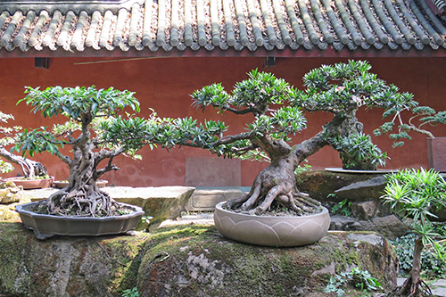 盆栽園の奥まで行くと小さな出入り口があり、恵陵前の門(扁額「千秋凛然」の門)の横に出る。