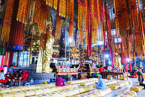 どの社殿もそこに祀られている仏像(仏像以外に建物や肖像画があった)の前に置かれた拝跪台で熱心に拝礼する人の姿が途切れない。