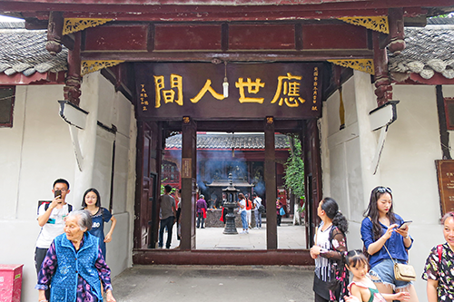 この「應世人間」は、1955年に中華人民共和国元帥の階級を授与された朱徳が、その後の文化大革命で追われたときに昭覚寺に逃れ事なきを得たことから、彼の秘書の周官和を通じて感謝の意を示すために贈ったとものだと、側の説明板にあった。