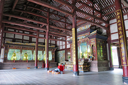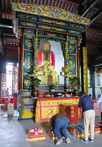 純陽演政警化孚祐帝君像が祀られている殿内の広い空間を独り占めしている参拝者が一人、何を願っているのか跪いたままズットこの姿だった。