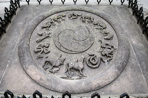 三清殿前の石段中央に嵌め込まれた石には十二支が刻んである。