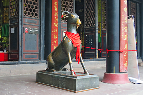 三清殿の前には二体の羊像が並んでいる。