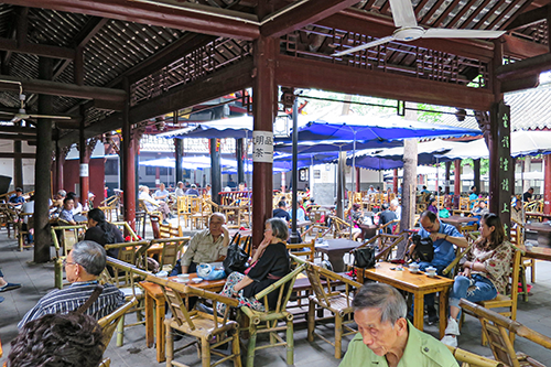 唐王殿の東隣に広い茶苑があり、ひと息入れる参拝者で賑わっていた。