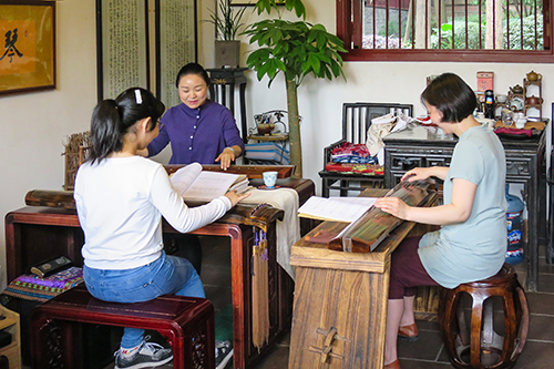 境内の片隅に「青羊琴館」の額を掲げた小さな琴教室を見つけた。