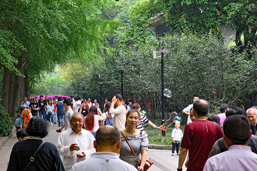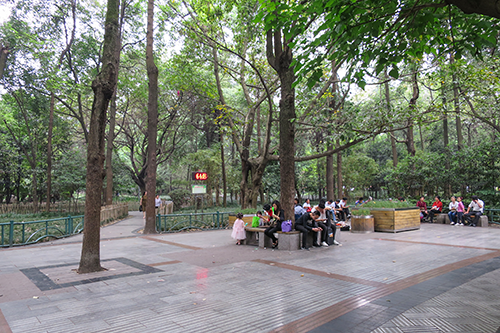 駅を出ると濃い緑。人民公園に向かう人が流れて行く。