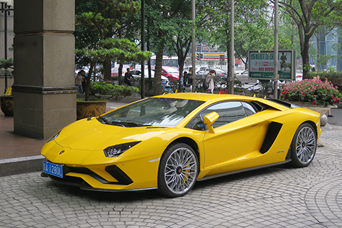 | ホテルの前に停まっていたランボルギーニ・アヴェンタドールS。 |