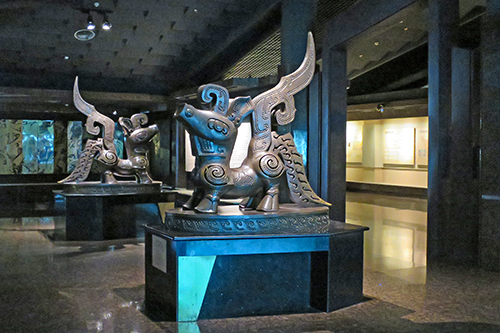 成都の北およそ40キロメートル、1986年に広漢市三星堆で二つの祭祀跡が発見された。調査の結果、3000年以上前の新石器時代から夏末商初(殷末周初)にかけての遺跡で古蜀国の都であることが判明。出土品はどれも他に類を見ない形状をしており、独自の文化を持っていたことが知れる。