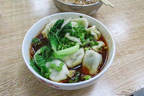 脂腸米線10元(190円)と清湯餃子12元(228円)を注文。どちらもゼツ旨。