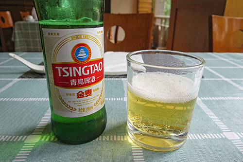 席に着いてからビールを注文。青島の小瓶だ。