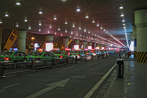 | 客待ちをする第二ターミナル前のタクシー。 |