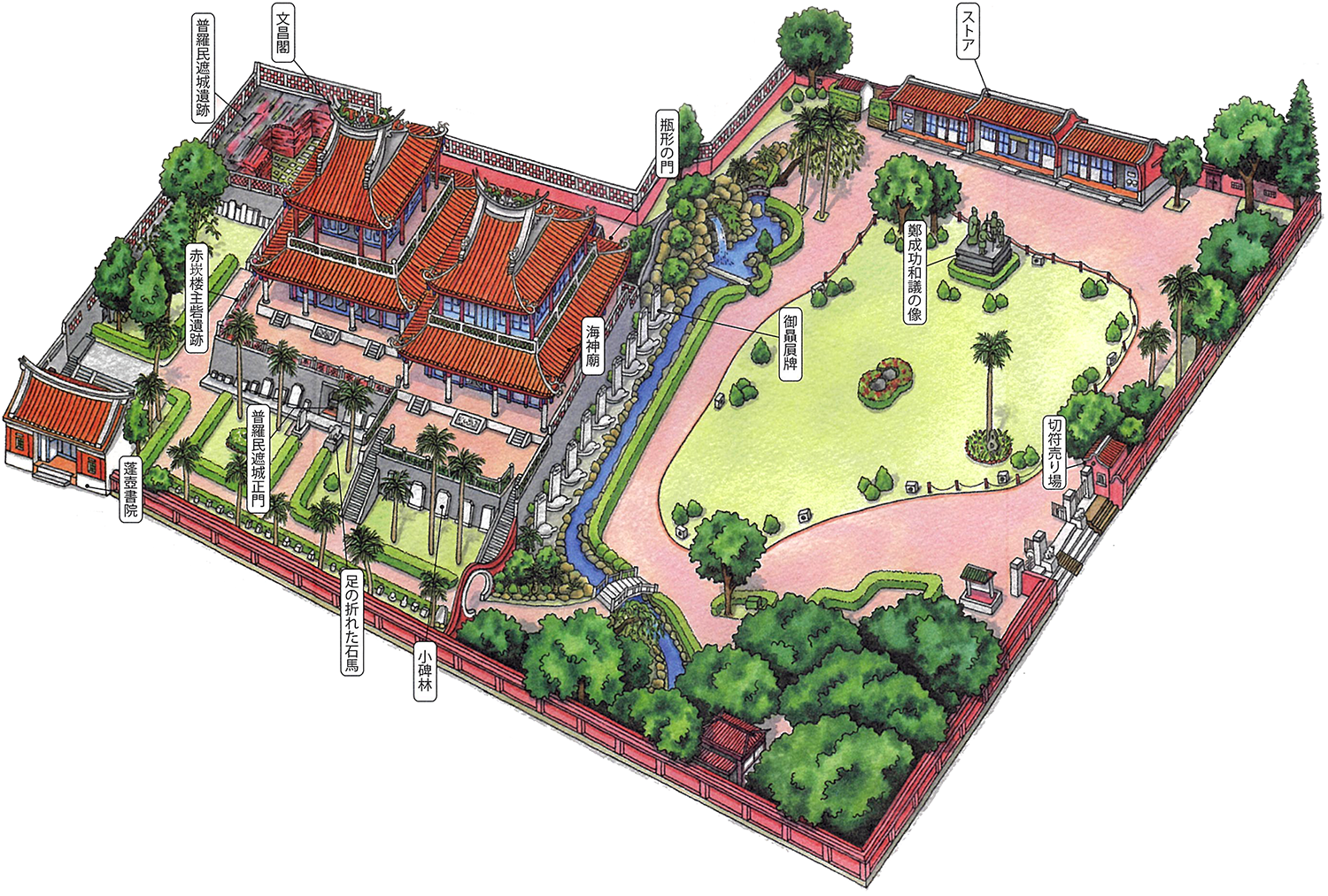 現在の赤嵌楼は海神廟、文昌閣、蓬壺書院から成っている。