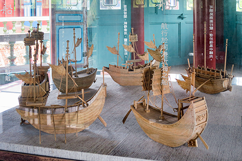 二階には「海神廟」の扁額の前に様々な様式の船の模型が陳列してある。