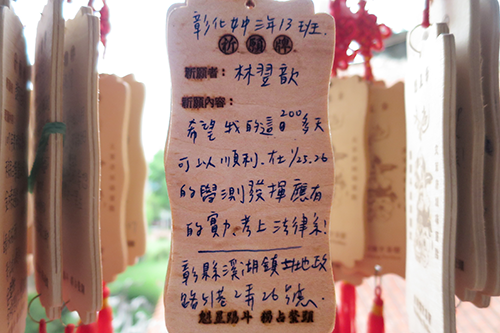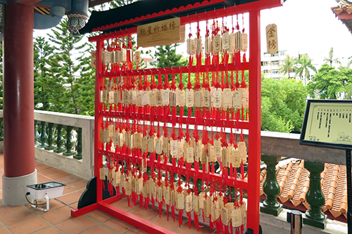 文昌閣の回廊に赤い柵に下げられているのは合格祈願札の絵馬ならぬ合格祈願札。台湾の新学期は9月からだから、今の時期は入試も終わった頃か。