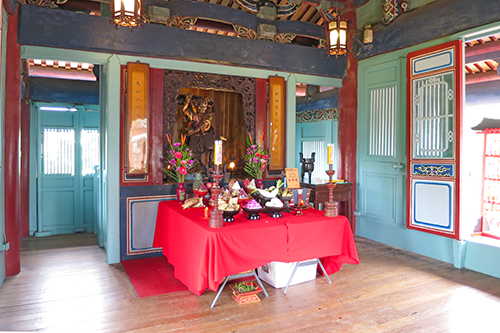 文昌閣二階には魁星爺を祀った祭壇があり、その前には魁星祭のための俄拵えと思われる供物台が置かれている。