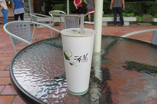お茶屋の前に立て掛けられている看板に惹かれてタピオカ・ミルクティー(60元/216円)を作ってもらう。