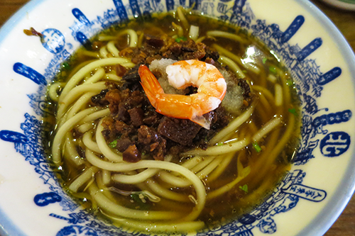夕食に赤嵌樓の並びにあった石精臼擔仔麺までブラブラ。夜になっても歩くと汗ばんでくる。