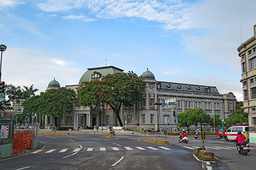 中正路が湯徳章紀念公園のロータリーにぶつかる角に建つ古い大きな建物は国立台湾文学館。