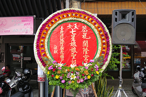 | 「七星娘娘」の文字が見える花飾り。 |