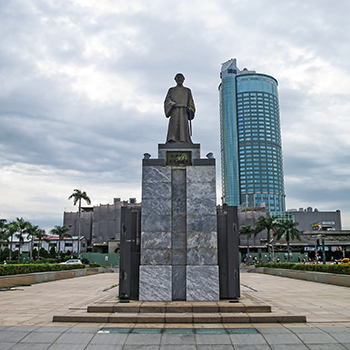 | ロータリー中央に立つ銅像とシャングリラ・ホテル。 |