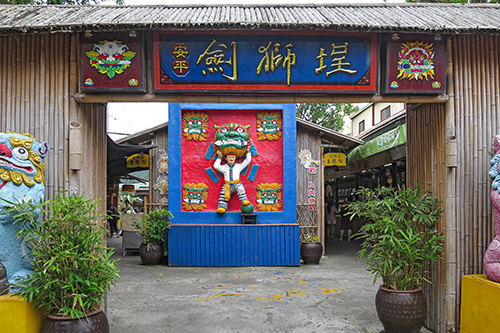 延平街に入ってまもなく左手に「埕獅劍」と掲げた質素な門。