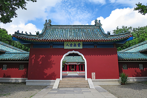 碑坊の奥の正門には「前無古人」の扁額がかかっている。