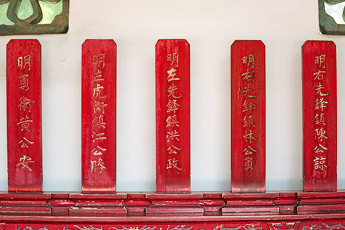 甘輝将軍祠の前に続く東廡(庇/実際は北側の回廊)、張萬禮将軍廟の前に続く西廡(庇/実際は南側の回廊)には鄭成功の文臣や武将の位牌・儀仗などが祀られてる。