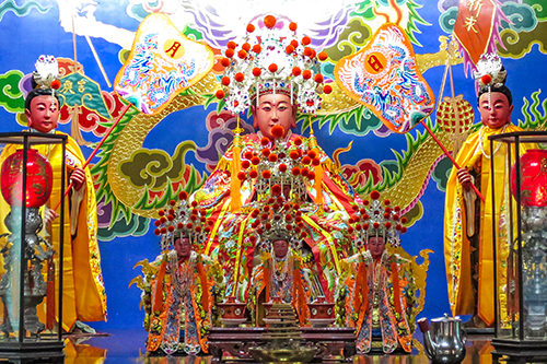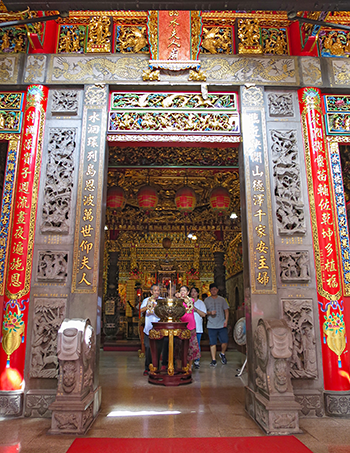 | 艶やかな色をした臨水天人媽廟の三川門。 |