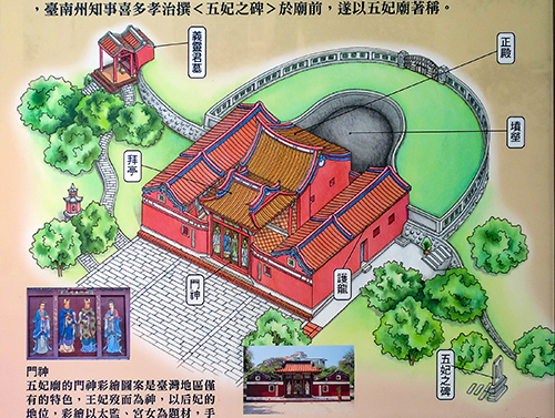 ここには明王朝最後の王、寧靖王(朱術桂/1617 - 1890)が清軍に追われて鄭成功と共に台湾へ渡ってきた五人の妃(袁氏、王氏、秀姑、梅姐、荷姐)が祀られている。